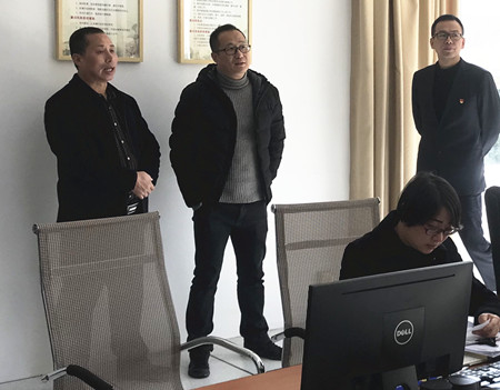 圖為集團副總經(jīng)理章海峰一行在監(jiān)控室檢查監(jiān)控設備