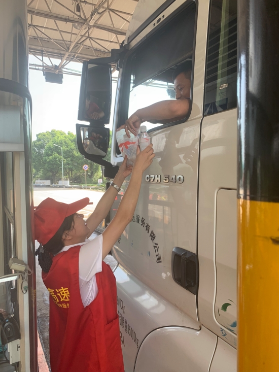 服務(wù)在崗,情系災區(qū) ——臨海南收費所組織開展“獻愛心”活動 8月14日中午,臨海南收費所車道安全島內(nèi)搭起臨時愛心服務(wù)臺,準備了禮品袋、礦泉水、風油精、人丹等物品,為過往司乘人員免費提供解暑用品。 高溫天氣中,該所員工身穿耀眼的“紅馬甲”,面帶微笑,顯得格外耀眼動人。