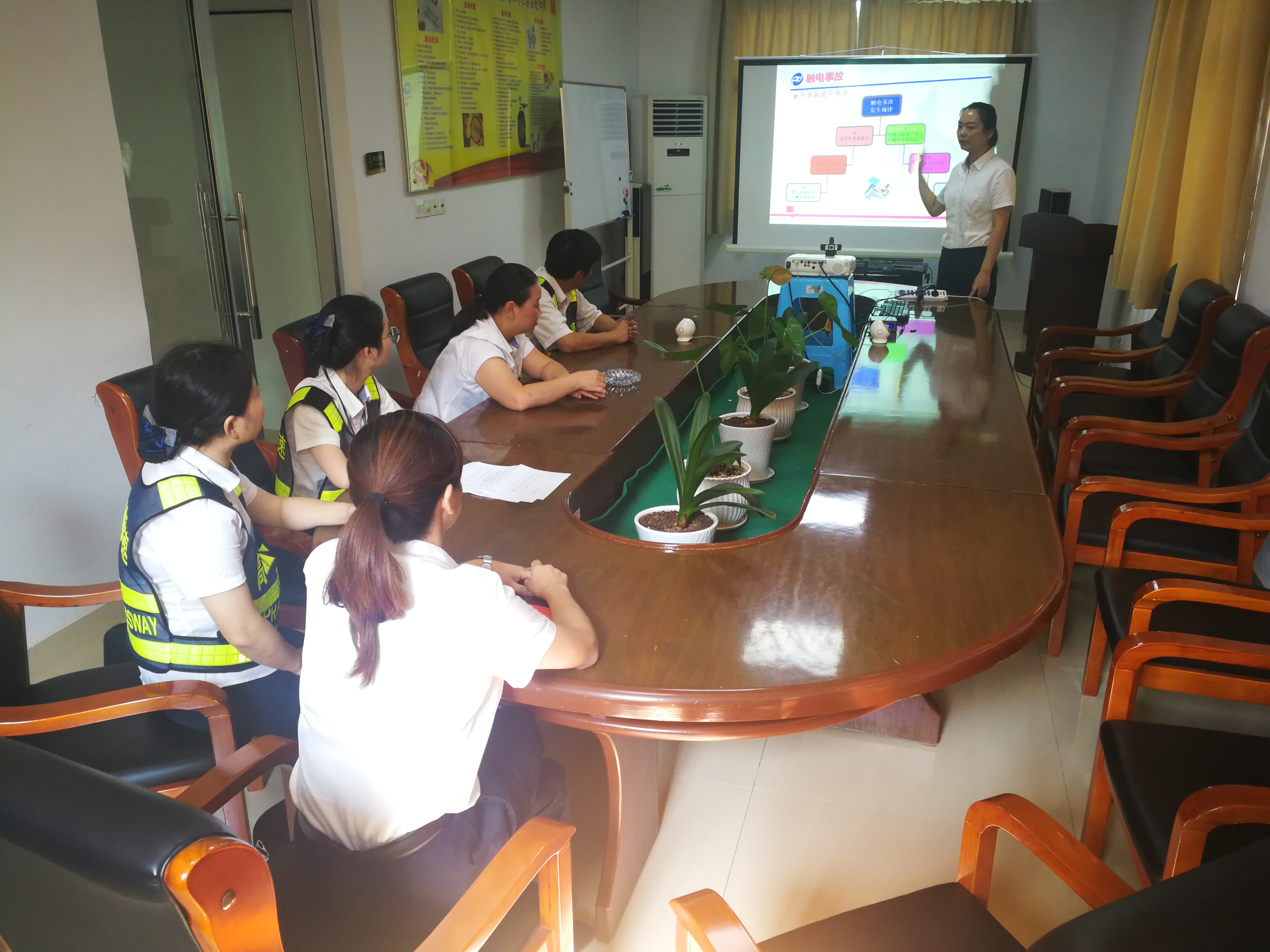 圖為培訓(xùn)現(xiàn)場 夏季是事故多發(fā)季,高溫天氣多變,增加了環(huán)境的不確定因素,給生產(chǎn)帶來了一定的安全隱患。本次臨海南收費(fèi)所主要從夏季多發(fā)的觸電、雷電、中毒和中暑等方面來講解安全生產(chǎn)。