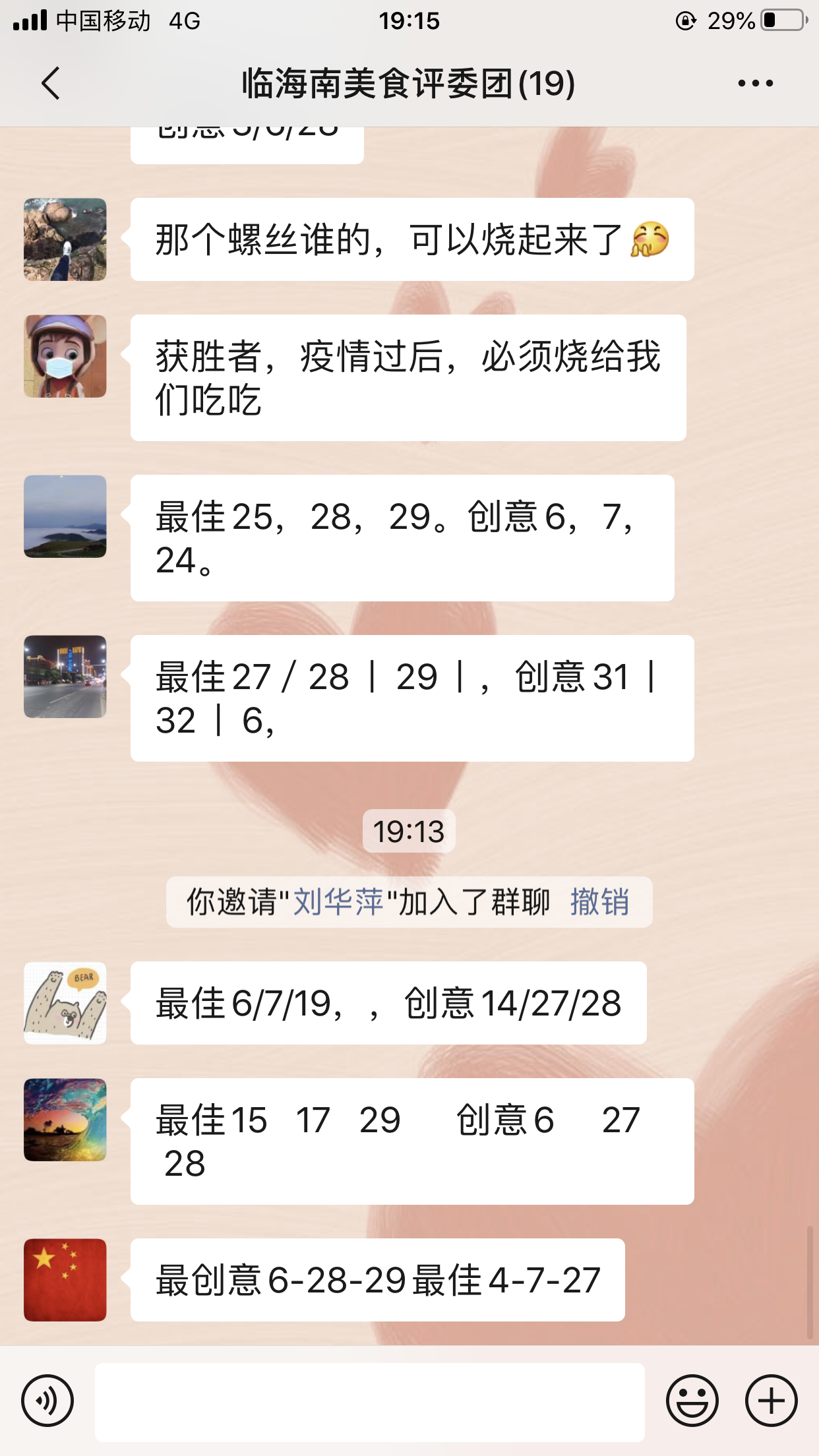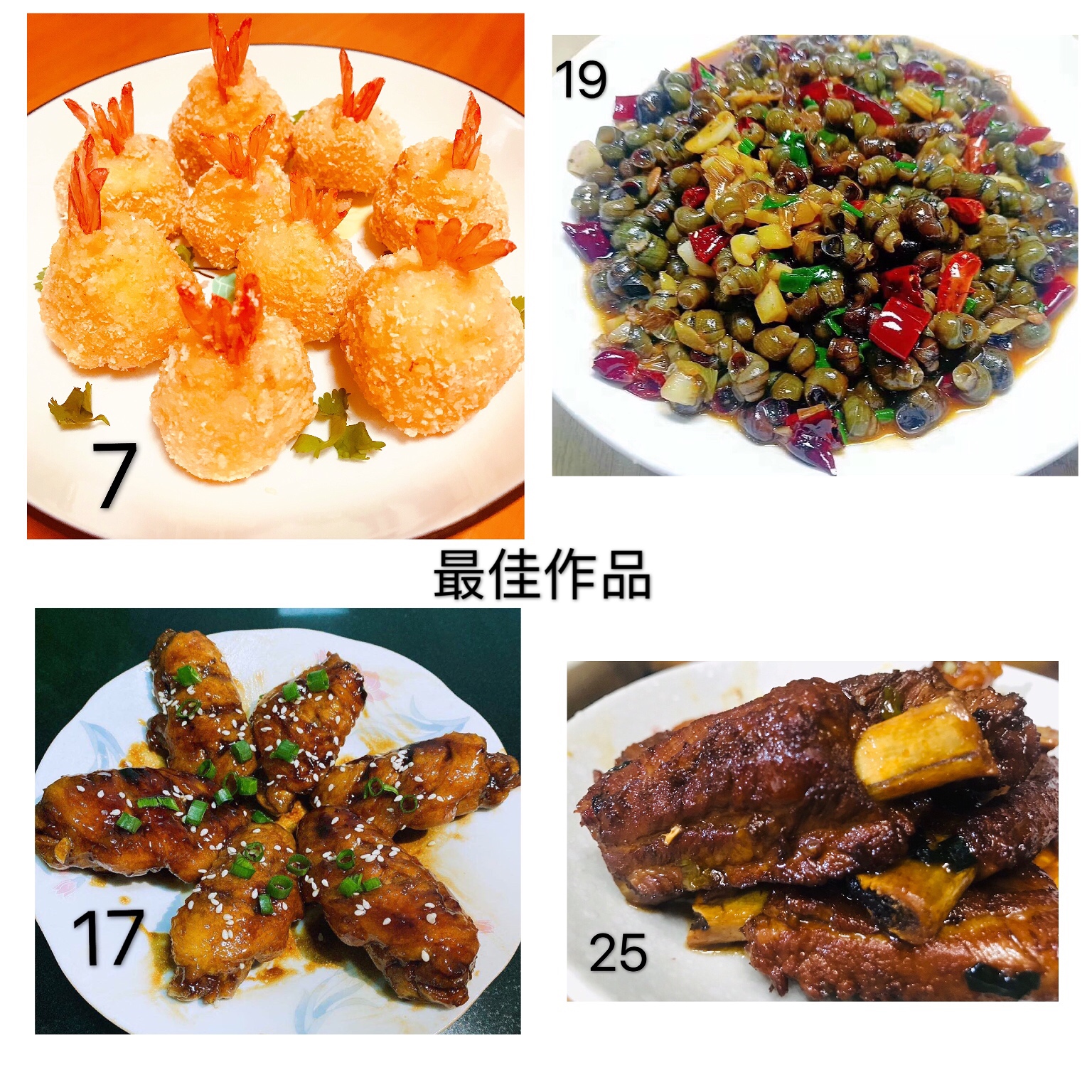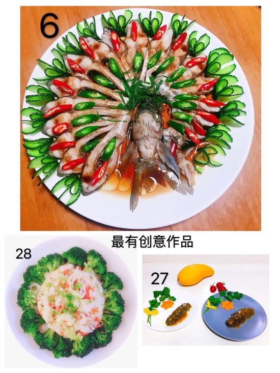 圖為評委團評選 本次活動共32幅作品進(jìn)行參評,最終評選出朱英英的《鳳尾蝦球》、謝海云的《饞嘴螺絲》、李菊麗的《昂翔展翅》、陳瑩的《骨色骨香》為“最佳作品”,朱英英的《孔雀開屏》、葉懿慧的《向陽花》、吳琴琴的《秋收》為“最有創(chuàng)意作品”。大家紛紛相約疫情過后,以廚會友、以食為樂,來一場百家宴一飽口福。 陳瑩