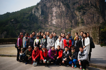 圖為第一批參加人員在瓊臺仙谷合影 上午9點(diǎn)30分,三個(gè)所共計(jì)40多位員工在集團(tuán)公司下屬的旅行社導(dǎo)游小孫的帶領(lǐng)下,從臨海結(jié)集出發(fā),去往“人與自然和合、人與人和合、人與社會和合”的“和合圣地”——天臺,游覽國清寺和瓊臺仙谷?!昂秃衔幕笔翘炫_山文化的精華,也是中華傳統(tǒng)文化的核心與精髓。近年來,臺州市大力推進(jìn)“和合文化”品牌建設(shè),全力打造“和合圣地”,賦予“和合文化”新的生命力。大家深處由秀美的自然山水和內(nèi)涵極豐富的佛道文化構(gòu)成的天臺山美景中,享受著自在與輕松,整個(gè)活動(dòng)過程更洋溢著“健康、和諧、友好、愉悅”的濃厚氛圍。 此次“一日游”活動(dòng),不僅激發(fā)了女員工們積極向上、自強(qiáng)不息的精神,也促進(jìn)了同事之間的感情,增強(qiáng)了隊(duì)伍的凝聚力和戰(zhàn)斗力,從而營造和諧美好的氛圍。 鄭瑛芝