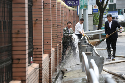 圖為沖洗安全島
