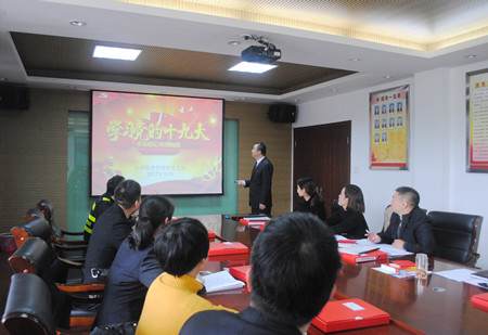 圖為學習十九大報告內容現場 黨支部書記王小勇制作了學習十九大報告內容的PPT,設框架、劃重點,以圖文并茂的形式,將學習十九大精神與日常工作緊密聯(lián)系起來,為更好地開展工作打下堅實的思想基礎。