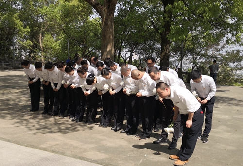 圖為向革命先烈鞠躬默哀