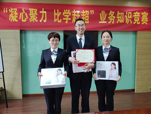 圖為獲勝人員 此次筆試和現場問答的競賽方式,測試了全所人員業(yè)務知識、實踐操作和新業(yè)務新知識的掌握程度,激發(fā)了大家比學趕超的熱情,同時也讓員工找到自身業(yè)務水平不足的一面,有利于推動規(guī)范化文明服務更上新臺階。 楊雅芬
