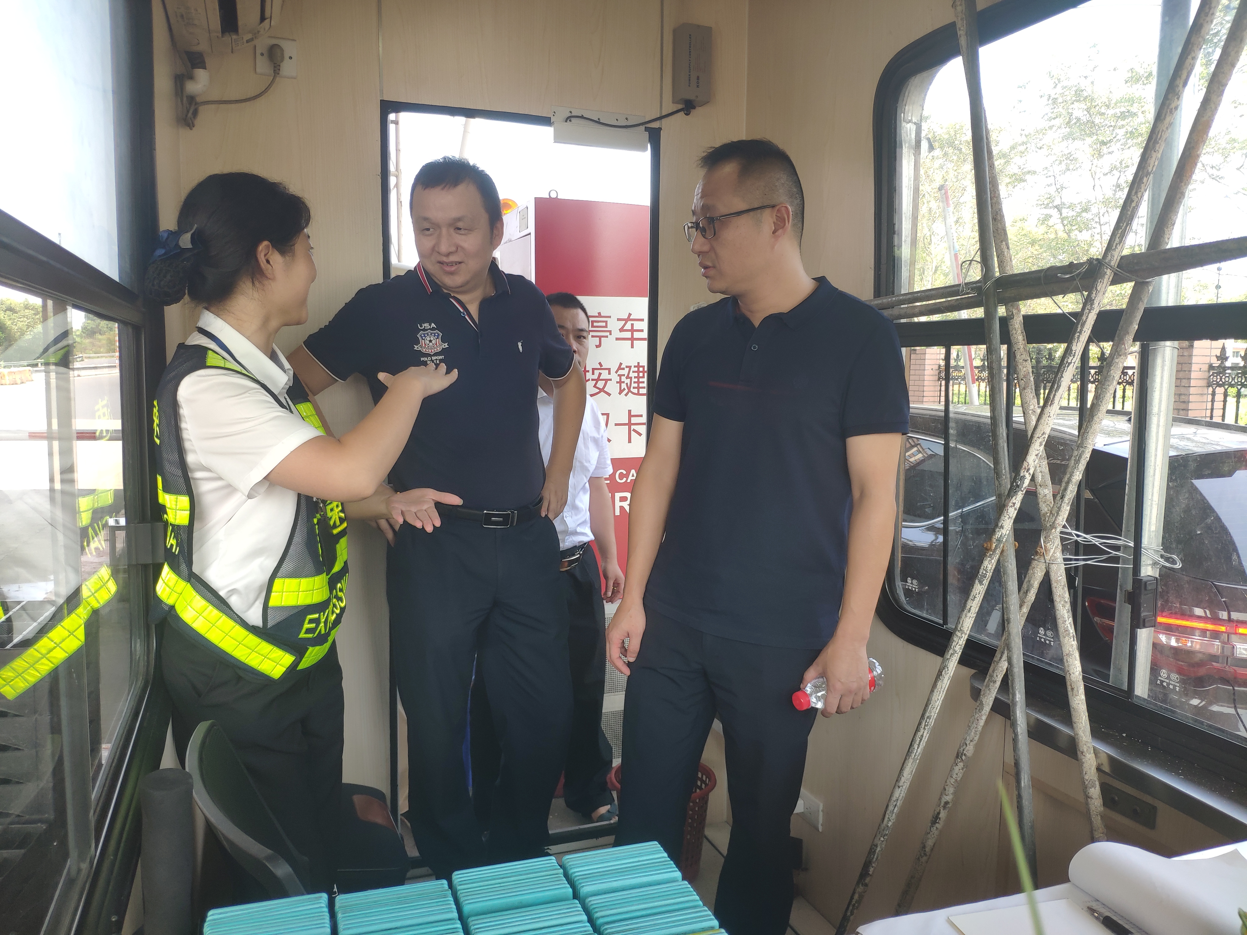 圖為章海峰檢查受損的收費(fèi)崗?fù)?/span> 9號(hào)臺(tái)風(fēng)“利奇馬”來(lái)勢(shì)洶洶,給收費(fèi)所帶來(lái)較大影響。該所積極配合施救部門,對(duì)在臺(tái)風(fēng)中掉落的龍門架情報(bào)板及時(shí)清理,為開(kāi)通做好準(zhǔn)備。臺(tái)風(fēng)造成停水停電,該所克服用水的需求,用儲(chǔ)水桶就近接來(lái)飲用水,保障食堂的用水,大家自發(fā)組織接雨水用于衛(wèi)生間。由于長(zhǎng)時(shí)間自發(fā)電,發(fā)電機(jī)超負(fù)荷運(yùn)行,該收費(fèi)所及時(shí)備好各類票據(jù),以備不時(shí)之需。由于停電、天氣炎熱,收費(fèi)員還做了小扇子,稍減炎熱。 臺(tái)風(fēng)過(guò)后的周末,該所負(fù)責(zé)人組織人員對(duì)所內(nèi)場(chǎng)地進(jìn)行清理,及時(shí)恢復(fù)收費(fèi)所環(huán)境衛(wèi)生。在得知接送車因?yàn)榈缆凡煌ㄟ€困在臨海時(shí),征費(fèi)二班、三班的全體人員都表示,可以克服困難繼續(xù)上班。在連續(xù)近四天的倒班中,大家的身體早已疲憊不堪,但還是將最好的一面展現(xiàn)在窗口中,齊心協(xié)力恢復(fù)收費(fèi)站生產(chǎn)生活。 楊雅芬