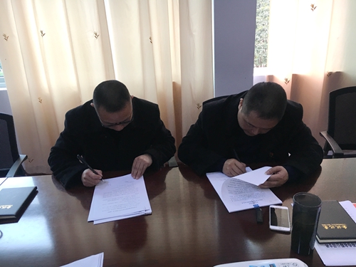 圖為簽訂責(zé)任書(shū) 會(huì)上,相關(guān)人員簽訂了《春運(yùn)安全生產(chǎn)責(zé)任書(shū)》、《入口車(chē)輛管理責(zé)任書(shū)》、《安全保暢目標(biāo)考核責(zé)任書(shū)》等。 夏蓮萍
