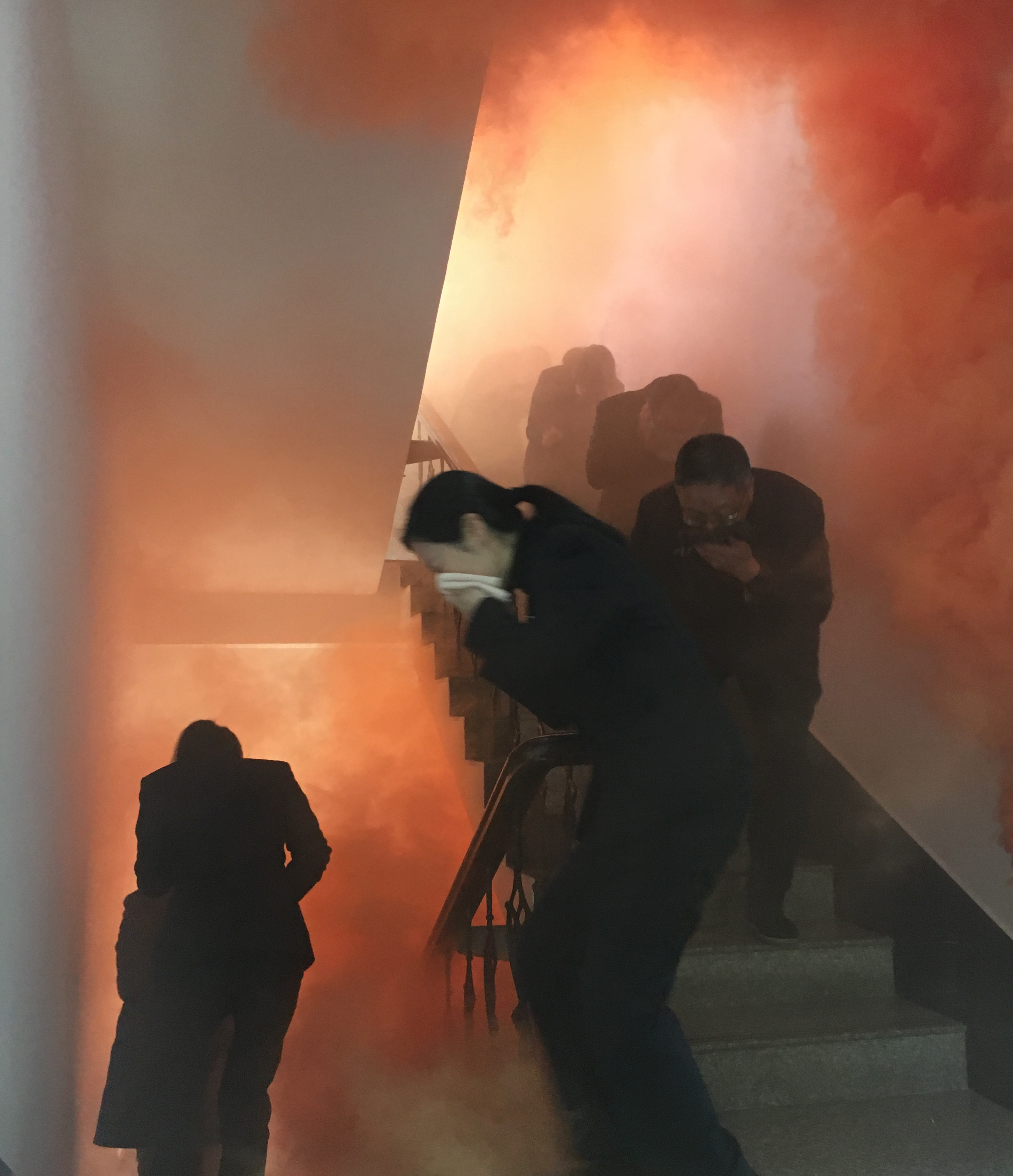 圖為樓道逃生演練 在樓道逃生演練中,大量煙霧彌漫,員工們熟練掌握逃生自救的要領(lǐng):個個用濕毛巾捂住口鼻,彎腰、沿著樓道有序快速往下逃離。 大家在突發(fā)事件面前臨危不懼、配合默契,保證了其它車輛的有序通行。在面對突發(fā)火災(zāi),也能做到有序、快速撤離。通過演練,各崗位人員不僅增強了安全意識,也提高了對應(yīng)急預(yù)案的熟悉程度和面對突發(fā)事件的反應(yīng)、處置和自救能力。 夏蓮萍