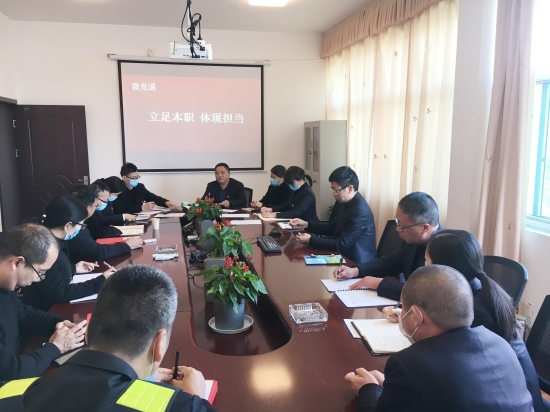 圖為支部書記上黨課現(xiàn)場 隨后,王益民為各黨員上了一堂《立足本職、體現(xiàn)擔(dān)當(dāng)》的微黨課。 夏蓮萍