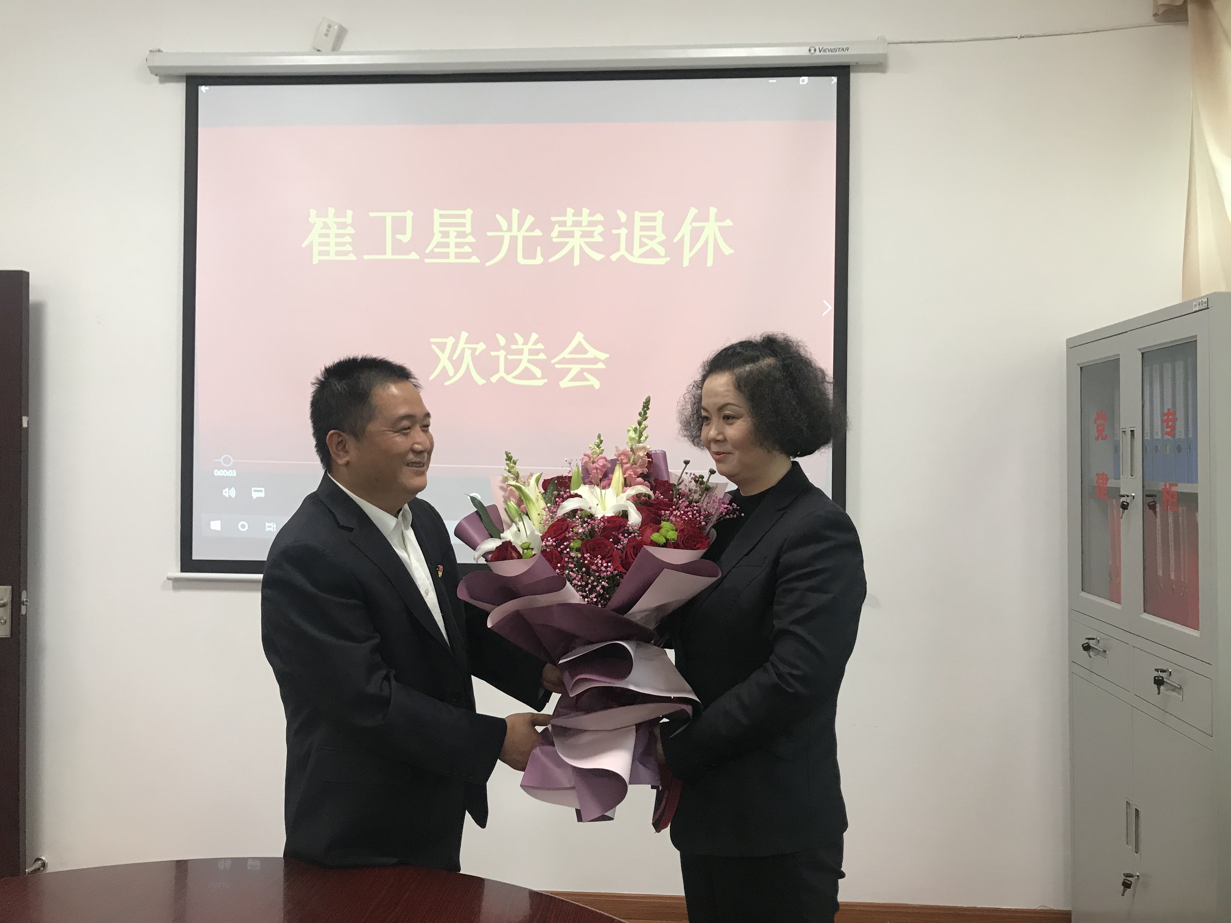 圖為所長王益民為退休員工送上鮮花 “看,這張照片是十多年前的,那時候是長發(fā),現(xiàn)在剪短了?!?/span> “這張是正規(guī)化整治時疊被子的照片?!?/span> “這張是我們三八活動班組的合影照?!?/span> 歡送會上,看著屏幕上播放的一張張照片,同班組的員工們紛紛暢所欲言,大家共同回憶一起奮斗、工作游玩的快樂時光,都感慨時間過得太快了,仿佛這些事情就發(fā)生在昨天。 崔衛(wèi)星激動地表達了對公司的熱愛和對公司美好前景的祝愿,對在一起工作的同事們依依不舍。所領導班子對她十多年來堅守工作崗位,兢兢業(yè)業(yè)、默默為臺州高速奉獻的精神表示充分的肯定與感謝,她的工作態(tài)度值得每一位員工去學習,同時祝愿她退休后的生活更加豐富多彩,希望她以后?;丶铱纯?。