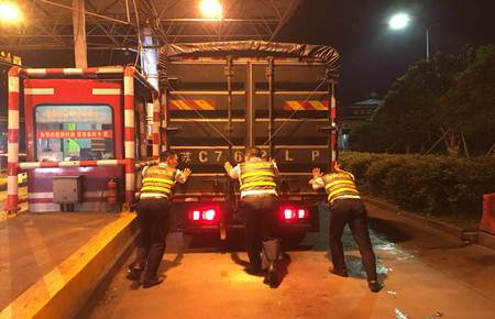 4月28日晚,夜幕降臨,車道上的車輛逐漸減少,溫嶺西收費(fèi)所的當(dāng)班工作人員有條不紊地堅(jiān)守著各自的崗位,一號(hào)綠農(nóng)車道上最為忙碌,拍照、檢查、收繳、放行……