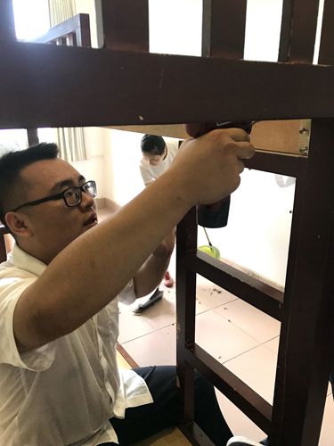 圖為員工拆除舊床 “這個(gè)房子是十幾年前建造的,每間宿舍的規(guī)格都不一樣,現(xiàn)在收費(fèi)所人員增多,房間比較緊缺?!痹撍L楊瑩瑩為解決員工的后顧之憂,使員工在住宿中感覺如家般溫暖,早在今年1月份,她便開始認(rèn)真籌備,并親自拿著卷尺細(xì)細(xì)測量每一間宿舍的尺寸,詳細(xì)記錄在紙上,如此細(xì)細(xì)琢磨,以盡可能得到最優(yōu)的方案和最佳的安排,給員工創(chuàng)造出良好的工作生活環(huán)境。