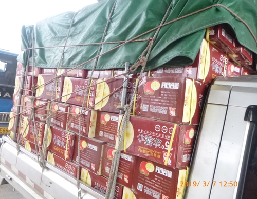 圖為綠農(nóng)車運(yùn)輸?shù)呢浳?/span> 按照流程,正常刷卡和收費(fèi)后,車子就可以放行了。但作為老收費(fèi)員,老周還是下意識地瞟了一眼車上的貨物,像是一箱箱蘋果,于是便詢問了司機(jī)。在得到司機(jī)的肯定回答后,老周告知他的貨車如果運(yùn)的是符合文件規(guī)定的“鮮活農(nóng)產(chǎn)品”,是可以免交通行費(fèi)的。于是老周叫上其他工作人員一同出去拍照檢查。在檢查過程中,得知司機(jī)是第一次運(yùn)蘋果上高速,不了解鮮活農(nóng)產(chǎn)品運(yùn)輸綠色通道相關(guān)政策,老周向他簡要介紹了有關(guān)綠農(nóng)車免費(fèi)通行政策。檢查后,該車是符合綠色通道減免政策的,老周作了登記后對該車免費(fèi)放行。 在此提醒廣大司機(jī),開車上路前可以多多了解高速公路相關(guān)的優(yōu)惠政策,如“重大節(jié)假日免收小型客車通行費(fèi)”和“鮮活農(nóng)產(chǎn)品運(yùn)輸綠色通道”等之類的相關(guān)政策法規(guī)。同時(shí),各收費(fèi)站將堅(jiān)決打擊假冒違法綠農(nóng)車,嚴(yán)格執(zhí)行相關(guān)政策規(guī)定,做到應(yīng)免不征,應(yīng)征不漏。 蔡建星