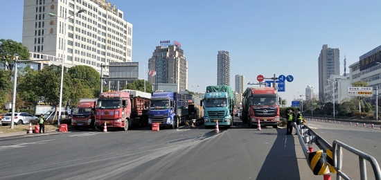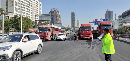 圖為所班子成員帶頭指揮交通 早上8點(diǎn)11分,接到監(jiān)控中心電話:入口開通,開足兩個(gè)人工車道。當(dāng)時(shí)正值新收費(fèi)模式開通前對(duì)稱重超限車輛勸返工作的開始。經(jīng)過幾個(gè)小時(shí)封道,此時(shí)的入口車流已經(jīng)一望無際,如果碰到超限車輛,勸返更是難上加難。 在困難中想對(duì)策,所領(lǐng)導(dǎo)班子成員提出“輪流式放行”:入口的車輛分別是從橋上和橋下過來,分為4個(gè)車道,每個(gè)車道輪流放行5分鐘,這樣井然有序,不容易造成擁擠和交通事故,并且可以快速放行。每個(gè)車道前都擺放了一個(gè)小紅帽,專人看守。其他人員分別在入口指揮,藍(lán)牌貨車和未安裝ETC的車輛從大小客車車道通行,大貨車從混合車道通行,裝有ETC的客車和集裝箱走ETC專用通道。大家不斷穿梭在車道、廣場(chǎng)之間,向司機(jī)一遍遍耐心解釋,指揮每一輛車順利通行。1名孕婦行動(dòng)不便,被分在監(jiān)控室接聽電話,查詢?nèi)肟跓o信息的車道。所有人一身汗,忙得顧不上喝一口水,臨近飯點(diǎn)也沒有人主動(dòng)去吃飯,大家都頂住壓力,從黎明到黃昏一心想著快速準(zhǔn)確高效放行。