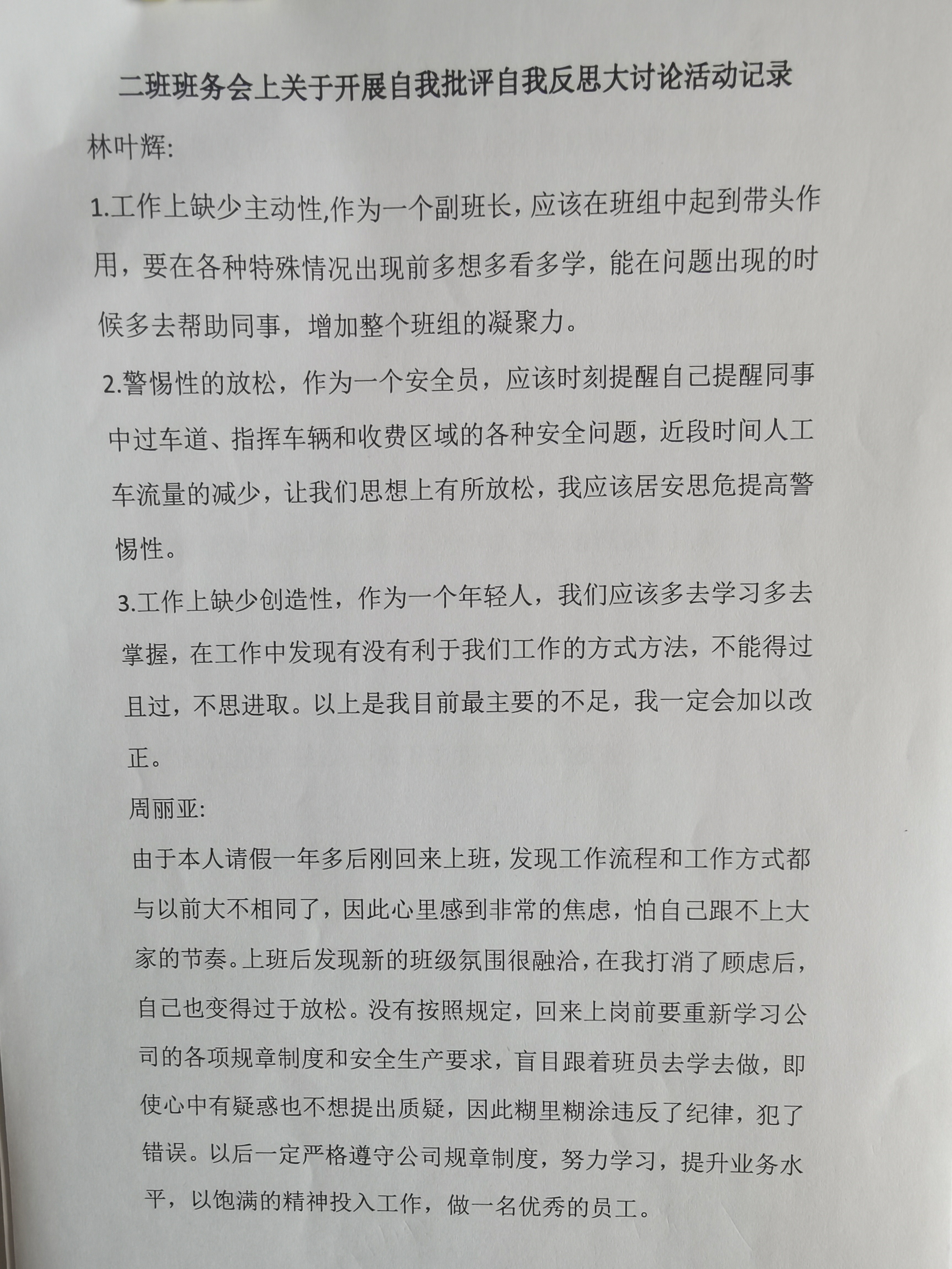 近日,溫嶺西收費所以班組為單位,組織員工開展自我批評、自我反思大討論活動。