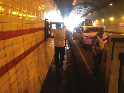 圖為隧道清洗現(xiàn)場 因隧道內(nèi)空間封閉,長時間來往車輛的尾氣、揚塵、機油混合一起,易沉積在隧道內(nèi)壁形成污垢,影響隧道內(nèi)照明效果,存在安全隱患。黃土嶺管理所組織養(yǎng)護人員對隧道側(cè)壁及路面進行全面清洗,重點對洞壁墻裙、標志標線等進行清潔,并利用半幅路封閉機會,全面排查和更換隧道內(nèi)臨近過期的滅火器,保證消防設(shè)施能夠正常使用。 此次全面清洗,有效提高了隧道內(nèi)的照明效果和空氣質(zhì)量,改善了行車環(huán)境,保障本路段安全通暢。 毛譯聆