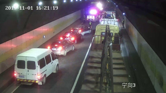 隧道內(nèi)三車追尾,“指揮員”“救援隊(duì)”“搬運(yùn)工”齊上陣 11月1日14時(shí)23分,黃土嶺隧道所中控員王之佳發(fā)現(xiàn)寧向隧道進(jìn)洞300米處超車道發(fā)生一起三車追尾交通事故。于是,執(zhí)勤隊(duì)員火速趕赴事故現(xiàn)場(chǎng)。 事故現(xiàn)場(chǎng),一輛貨車橫跨在超車道上,貨車上的桔子散落一地,現(xiàn)場(chǎng)一片狼藉,事故車輛占用了隧道內(nèi)僅有的兩個(gè)車道,導(dǎo)致后方車輛一度無法通行。所幸的是司機(jī)只有輕微受傷。