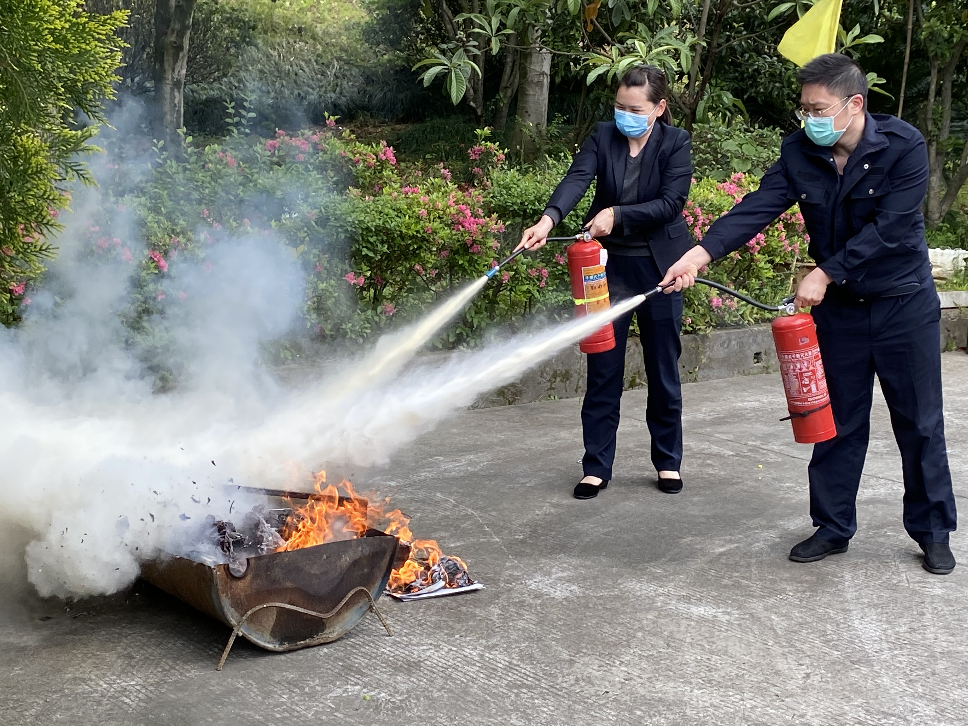 圖為滅火器滅火演練現(xiàn)場