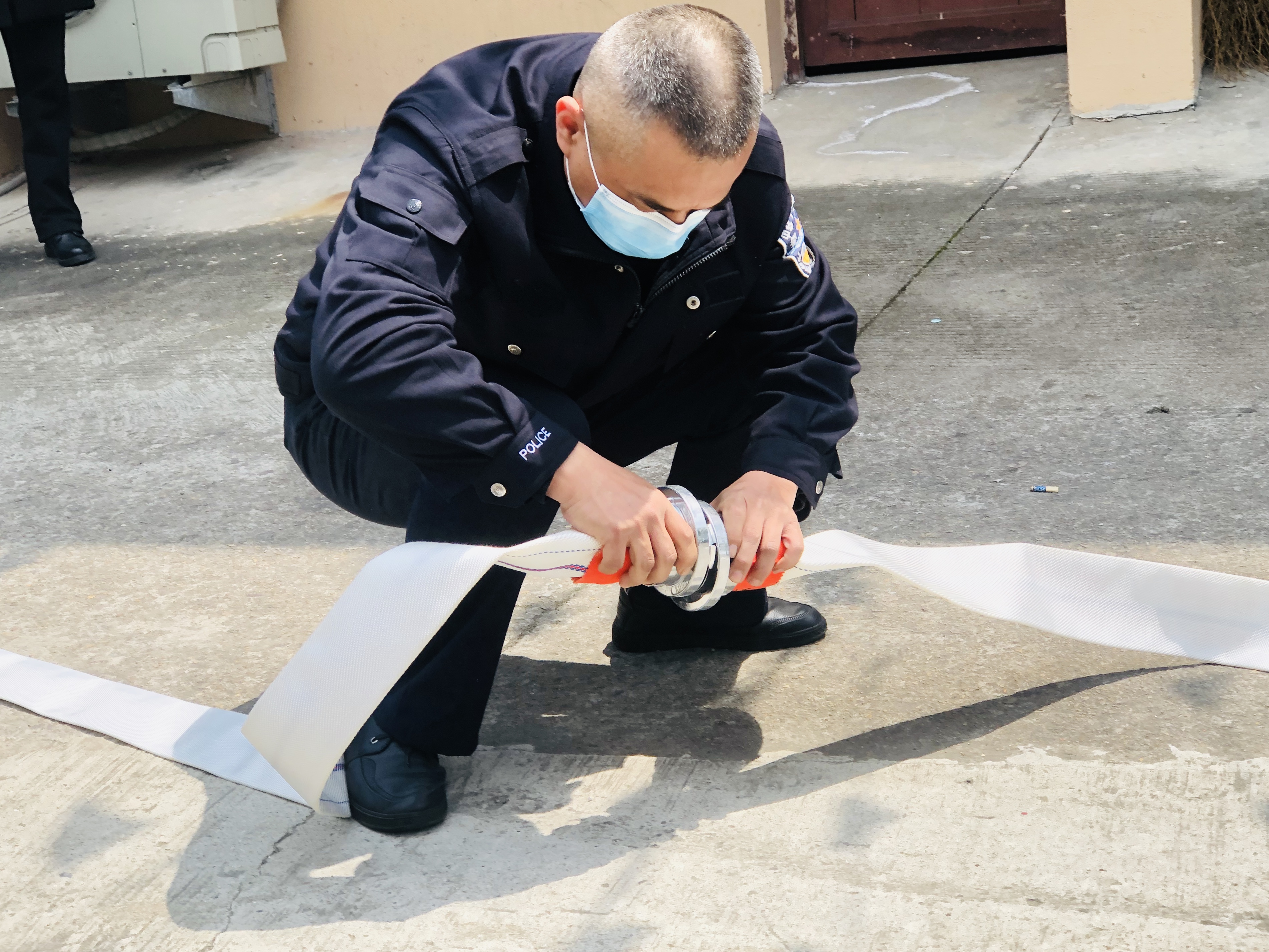 圖為水帶演練現(xiàn)場