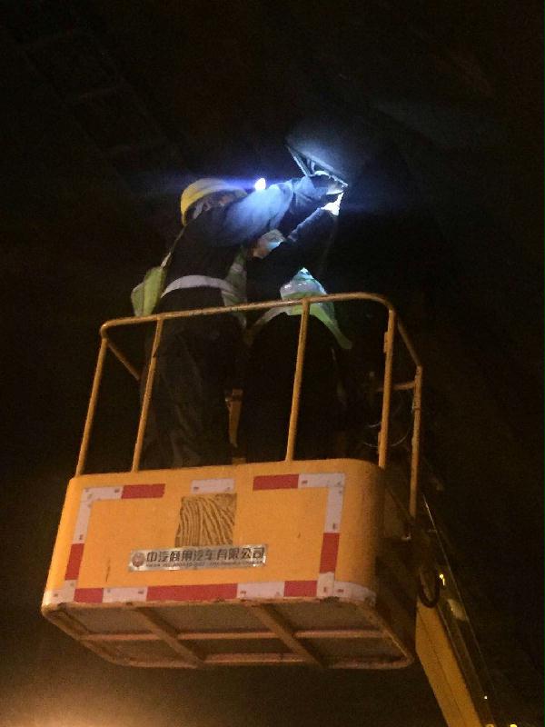 圖為進隧道進行搶修 找到無圖像的“癥狀”之后,大溪嶺隧道所電工與維養(yǎng)中心的弟兄“對癥下藥”,在大家的共同努力下,10:49完成攝像頭的搶修工作,寧向隧道恢復正常通車。 孫鵬