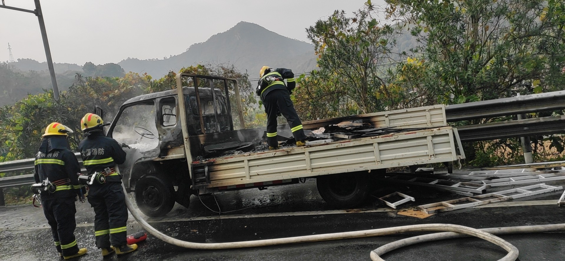 12月13日12:48中控發(fā)現(xiàn)溫向隧道入洞口600米處的情報(bào)板下濃煙滾滾,中控切換火災(zāi)圖像至監(jiān)控中心。并啟動(dòng)火災(zāi)報(bào)警系統(tǒng),按下火災(zāi)按鈕,由于著火點(diǎn)距離隧道北廣場(chǎng)最近的消火栓有500百米,隊(duì)員們出警時(shí)從倉庫里取出數(shù)只滅火器,由于車輛未實(shí)施封道,車輛一直在事故車旁邊呼嘯而過,給現(xiàn)場(chǎng)救援帶來難度,王宇鵬、湯寧光、陳幸?guī)е鴾缁鹌黠w奔去滅火,巡邏車準(zhǔn)備駛?cè)胧鹿受嚭筮M(jìn)行封道預(yù)警。