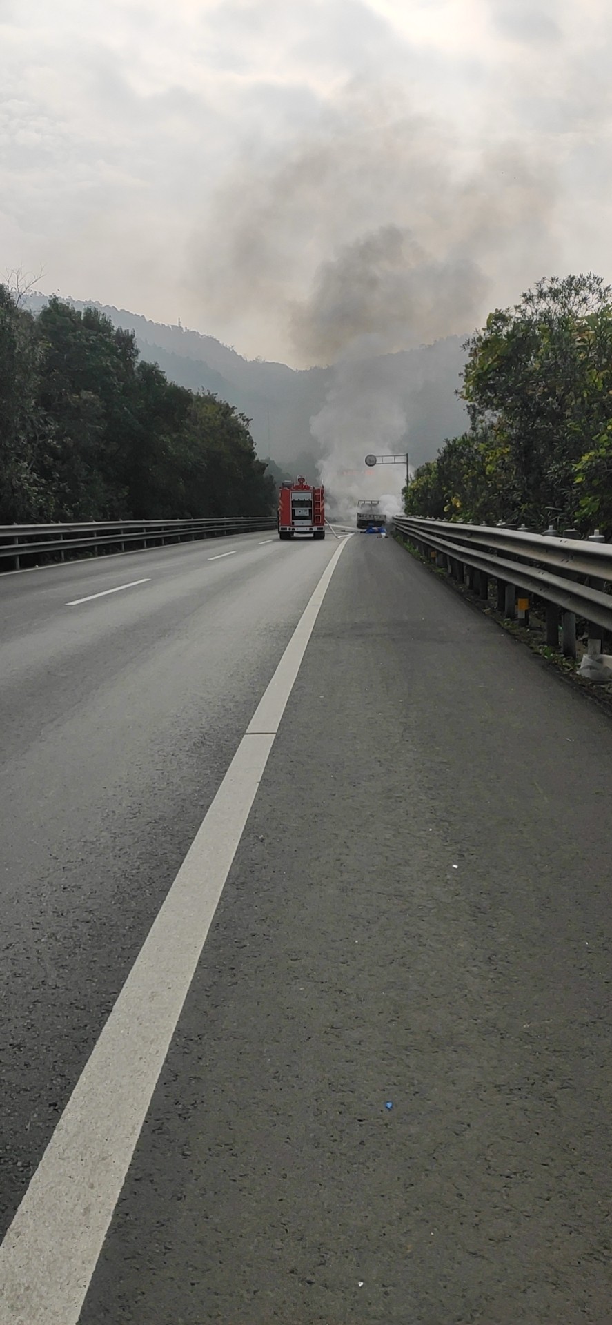 12:57巡邏車在事故車后進(jìn)行封道預(yù)警。由于未在火災(zāi)初期控制火情,隊(duì)員們帶著的幾個(gè)滅火器只是杯水車薪,13:03消防車到達(dá)現(xiàn)場(chǎng)并進(jìn)行滅火,火情立即得到控制,執(zhí)勤隊(duì)員反饋中控員現(xiàn)場(chǎng)需要拖車、清障車和救護(hù)車,13:04救護(hù)車、清障車分別趕至現(xiàn)場(chǎng)處置,13:18臺(tái)州高速交警處置事故后續(xù),13:23拖車到達(dá)現(xiàn)場(chǎng)將事故車輛拖離,大溪嶺寧向隧道全部恢復(fù)正常。
