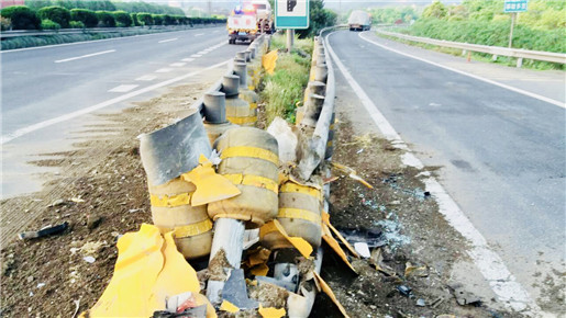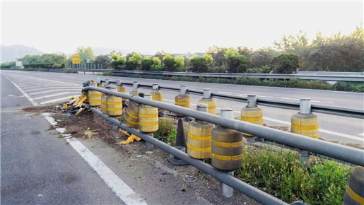 圖為被撞損的旋轉(zhuǎn)護(hù)欄