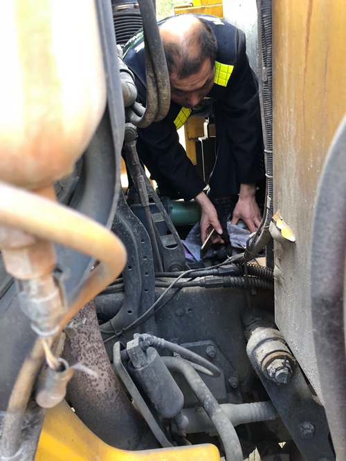 圖為施救現(xiàn)場 為了應(yīng)對隨時可能出現(xiàn)的救援情況,中心領(lǐng)導(dǎo)發(fā)動人員兵分三路,火速進(jìn)行離合器片的更換修理。機(jī)動人員聯(lián)系附近的4 S店,講明情況,可是沒有該種型號的離合器片,值班人員又火速趕往青嶺服務(wù)站去取新的備用離合器片。當(dāng)班駕駛員馬上聯(lián)系了院橋駐點(diǎn)當(dāng)班人員,必要時進(jìn)行聯(lián)動配合。 當(dāng)晚十點(diǎn)半左右,離合器片終于更換完畢,當(dāng)班人員立即進(jìn)行性能測試,這輛使用頻率超高的救援車又奔跑在緊張的救援路上。 王凱