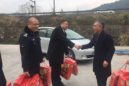 圖為公司董事長謝文君在一線慰問 每到一所,謝文君都向在崗亭內(nèi)收費和監(jiān)控室內(nèi)的員工送上新春祝福,道聲:“辛苦了!”詢問值班安排,了解車流量情況。當?shù)弥斕燔嚵髁刻貏e大時,謝文君要求各收費所即使是小型客車免費時間,也要合理安排上崗員工休息、吃飯時間,增強收費力量,加強各所間交流,及時掌握車流量變化,維護好通行秩序,確保安全暢通。要求各隧道所加強監(jiān)控,時刻關(guān)注隧道內(nèi)車流變化,及時提醒過往司機減速慢行通過隧道,確保過往司乘人員過個祥和平安的春節(jié)。 此外,謝文君還到食堂、宿舍查看員工在節(jié)日期間的飲食和住宿情況。了解在崗員工個個精神飽滿、熱情洋溢,謝文君感到欣慰,鼓勵大家繼續(xù)努力,提供優(yōu)質(zhì)的文明服務(wù),樹好公司形象。