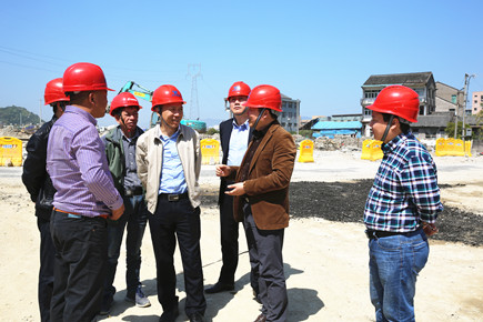 圖為公司總經(jīng)理張建平督查內(nèi)環(huán)北路(江口段)工程