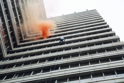 會后,在項同富的總指揮下,所有人員冒雨到現(xiàn)場觀摩高層逃生演練和消防應(yīng)急拉動滅火模擬演練。隨著一聲“演練開始”指令,大樓16層窗口冒出滾滾濃煙,被困人員使用緩降器順利降至5樓室外平臺。面對大樓南側(cè)的“火災(zāi)”,兩組身穿專業(yè)消防服的參演人員迅速到位,一組拿水槍,一組提起滅火器,迅速撲滅火源。演練圓滿結(jié)束。消防專業(yè)人員在現(xiàn)場為大家點(diǎn)評演練,指出逃生、滅火過程中的細(xì)節(jié)問題和注意事項,并提醒大家面對火災(zāi),要先控火再抗火,掌握科學(xué)的滅火方法。