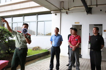 圖為公司總經(jīng)理張建平到現(xiàn)場觀摩演練、聽專業(yè)安全消防員演練點(diǎn)評