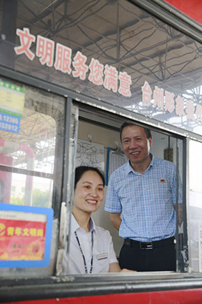 “今天車流量多嗎?你們是公司形象的代表,請把最優(yōu)質(zhì)的服務(wù)提供給他們。”在臺州收費所一號崗?fù)だ?,張建平一邊慰問?dāng)班收費員,囑咐他們注意安全和休息,一邊鼓勵他們堅持做好文明服務(wù)。他還到黃土嶺隧道所、臨海南收費所慰問當(dāng)班執(zhí)勤隊員和收費員。此時,各所食堂管理房正處于改造階段,他仔細查看了各所食堂和工作場所,了解大家的飲食和工作環(huán)境。