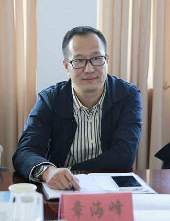 圖為集團(tuán)副總經(jīng)理章海峰在座談會上與訪客交流