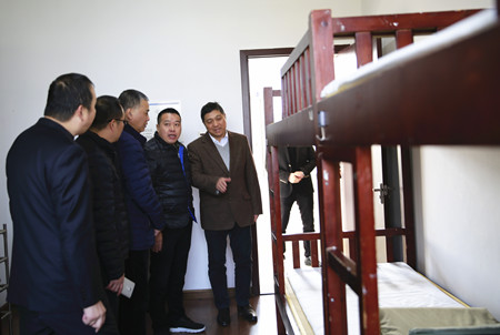 圖為市行政服務(wù)中心黨委副書(shū)記金偉一行在員工寢室參觀
