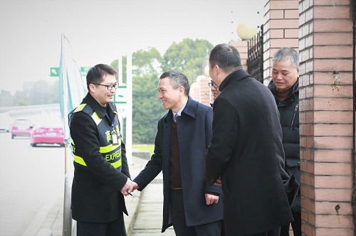 圖為集團(tuán)總經(jīng)理張建平在臨海南收費(fèi)站檢查