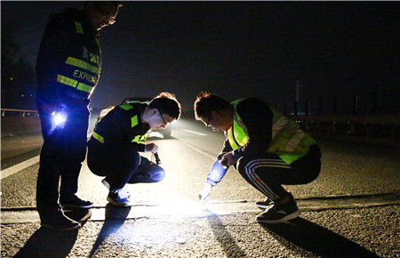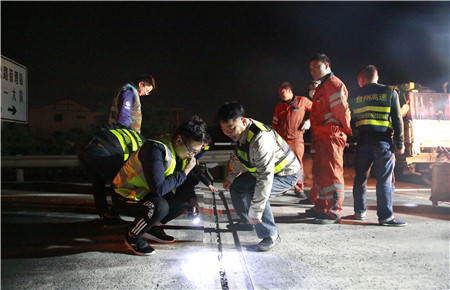 “橋梁伸縮縫修理小組,錐形標(biāo)志擺放長(zhǎng)度不足,施工點(diǎn)燈光不足,尤其下半夜運(yùn)料車駕駛員疲勞,極有可能闖入施工區(qū),請(qǐng)施工監(jiān)理單位嚴(yán)加管控,確保安全。”23日凌晨2點(diǎn),工程部對(duì)施工、監(jiān)理單位發(fā)出指令。施工期間經(jīng)常都會(huì)有類似于此的細(xì)節(jié)命令不斷提出。工程部連帶負(fù)責(zé)人共有7名專業(yè)技術(shù)人員,每晚緊盯施工現(xiàn)場(chǎng)指導(dǎo)監(jiān)督施工,嚴(yán)格把控好安全關(guān)、質(zhì)量關(guān),全過(guò)程嚴(yán)格管理。第二天仍然堅(jiān)持辦公處理日常事務(wù),下午定時(shí)召開(kāi)工地現(xiàn)埸碰頭會(huì)協(xié)調(diào)會(huì)解決相關(guān)問(wèn)題,爭(zhēng)分壓秒搶施工進(jìn)度。壓力即是動(dòng)力,戰(zhàn)斗在一線的工程人員始終用堅(jiān)定的信念,秉著改善路況迎接國(guó)檢的強(qiáng)大決心,發(fā)揮攻堅(jiān)不畏難的精神,再次以實(shí)際行動(dòng)生動(dòng)詮釋了高速鐵軍的內(nèi)涵。