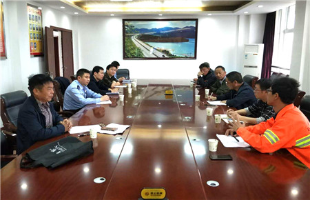圖為工程部人員現(xiàn)場(chǎng)檢查探討路面病害