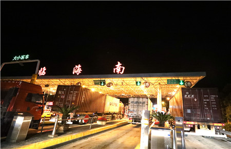 當晚20時許,一切整裝就緒,分流正式開始。瞬間,原來還空曠的臨海南收費廣場車輛絡繹不絕,轟鳴聲不絕于耳。車流各收費所班子成員全數(shù)在崗管控現(xiàn)場,當班班組一如既往地沉穩(wěn)應對,微笑接卡、唱收唱付、禮貌迎送,行政班人員輪流值班,時刻準備旁站和補崗。