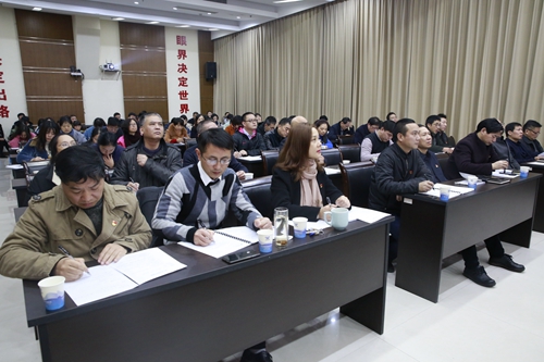 圖為參加學習的黨員領導干部和職工 活動由總經(jīng)理助理李軍鋒主持,集團大樓全體員工現(xiàn)場參加學習,各所、中心、子公司通過視頻會議系統(tǒng)學習。 陳林偉