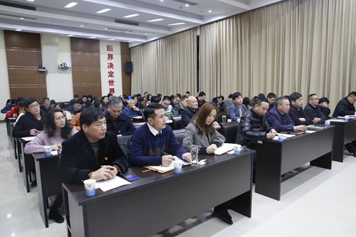 圖為參加學(xué)習(xí)的領(lǐng)導(dǎo)班子成員和黨員干部職工