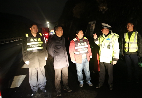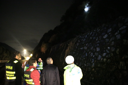 張建平與高速交警、施工單位等相關(guān)人員仔細(xì)勘踏險情現(xiàn)場,連夜會商制定解決高邊坡落石臺上的巨石方案。由于深夜天黑,高邊坡坡度較高,沒有直接供人上坡的道路,夜間施工存在較大困難且易造成人身危險,只能安排人員緊盯現(xiàn)場通宵觀察情況,隨時匯報險情進(jìn)展,等天一亮立即清理二級平臺上的大落石。張建平特別叮囑相關(guān)部門負(fù)責(zé)人,近期雨水還將持續(xù)一段時間,容易造成塌方等自然災(zāi)害的發(fā)生,一定要組織人員再次對高速全線高邊坡開展隱患大排查。