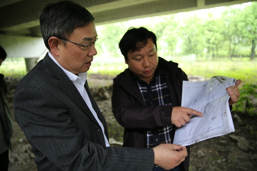 細雨中,陳文波一行踏勘走訪了院橋大拉溝104國道跨高速公路主線施工現(xiàn)場、庫灘橋14國道橋洞、院橋互通1號橋等地,了解在實際工作中存在的一些難點問題和存在的安全隱患。