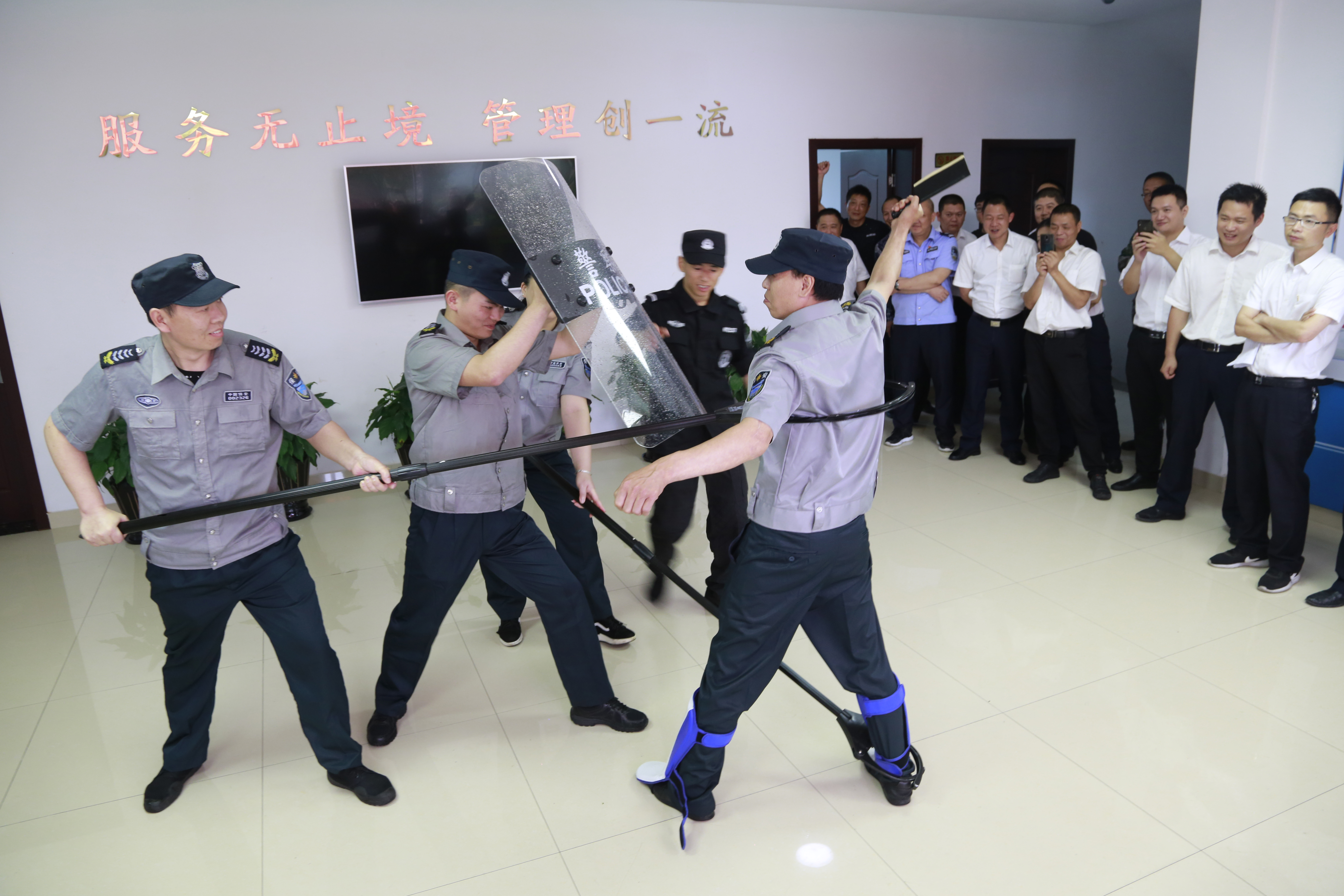 演練開始前,盧尚明對防爆盾牌、防爆鋼叉、抓捕器、警棍等各類防爆器材的功能和使用方法進行一一講解,并示范操作,以及帶領大樓浙師大印象物業(yè)人員現(xiàn)場練習器械使用。