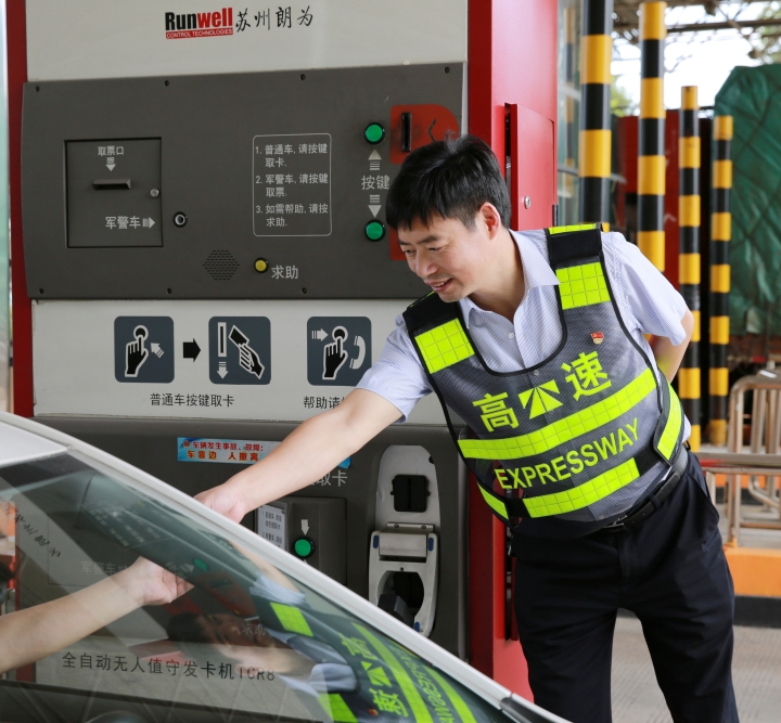 而在對(duì)面發(fā)卡的安全總監(jiān)項(xiàng)同富正襟危坐,等待著車(chē)子的駛?cè)耄?/span>“記住動(dòng)作就忘記微笑,笑起來(lái)又忘記要說(shuō)什么......真有點(diǎn)手忙腳亂的,做好收費(fèi)員,不容易?!?/span>