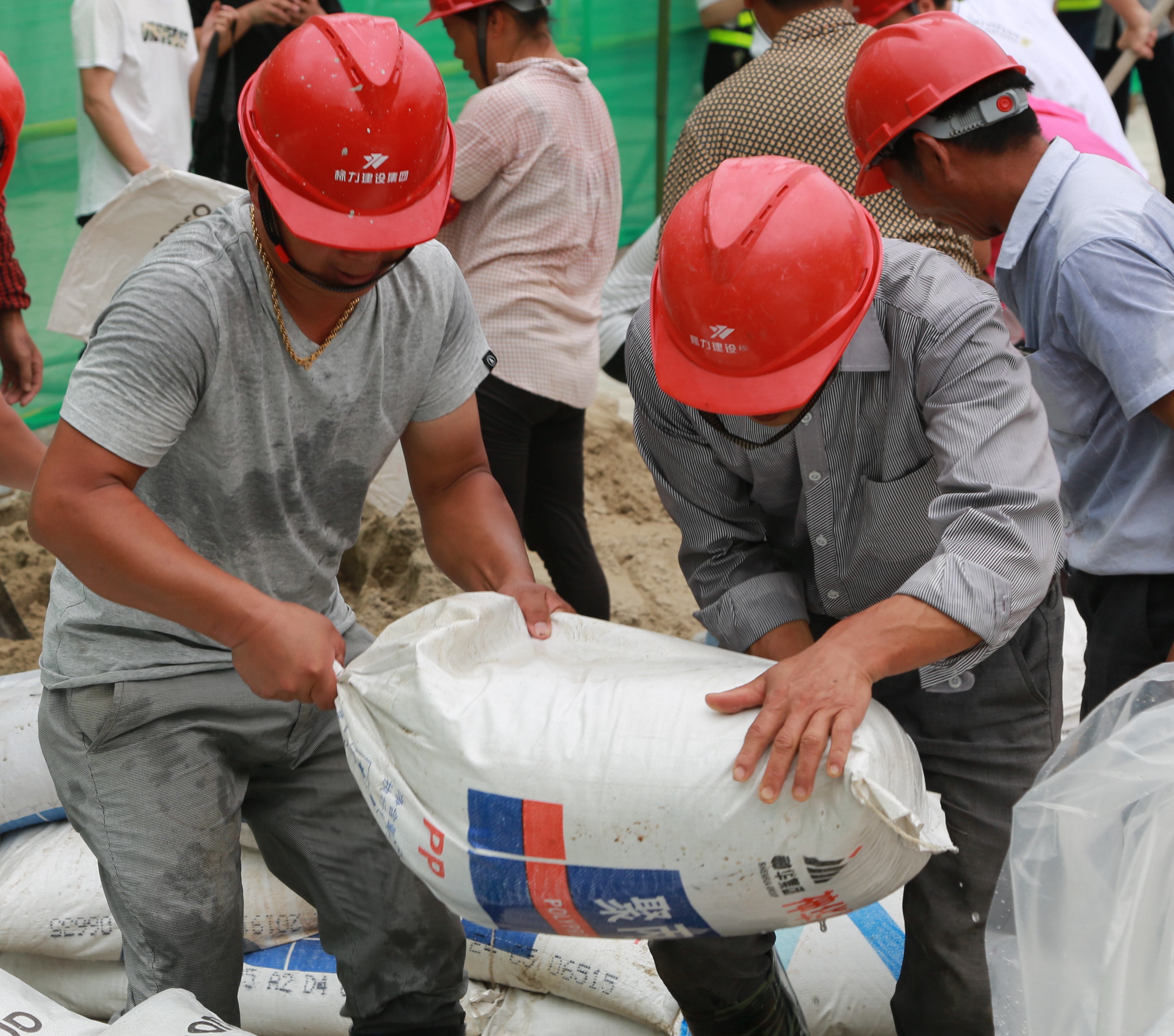 “第一組演練人員,準(zhǔn)備……”隨著集團安全總監(jiān)項同富一聲令下,應(yīng)急演練的第一個科目沙包圍堰防洪開始,應(yīng)急搶險小組人員和房產(chǎn)施工單位代表隊聽到指令后立刻趕到用沙包圍成的兩個大水池附近。
