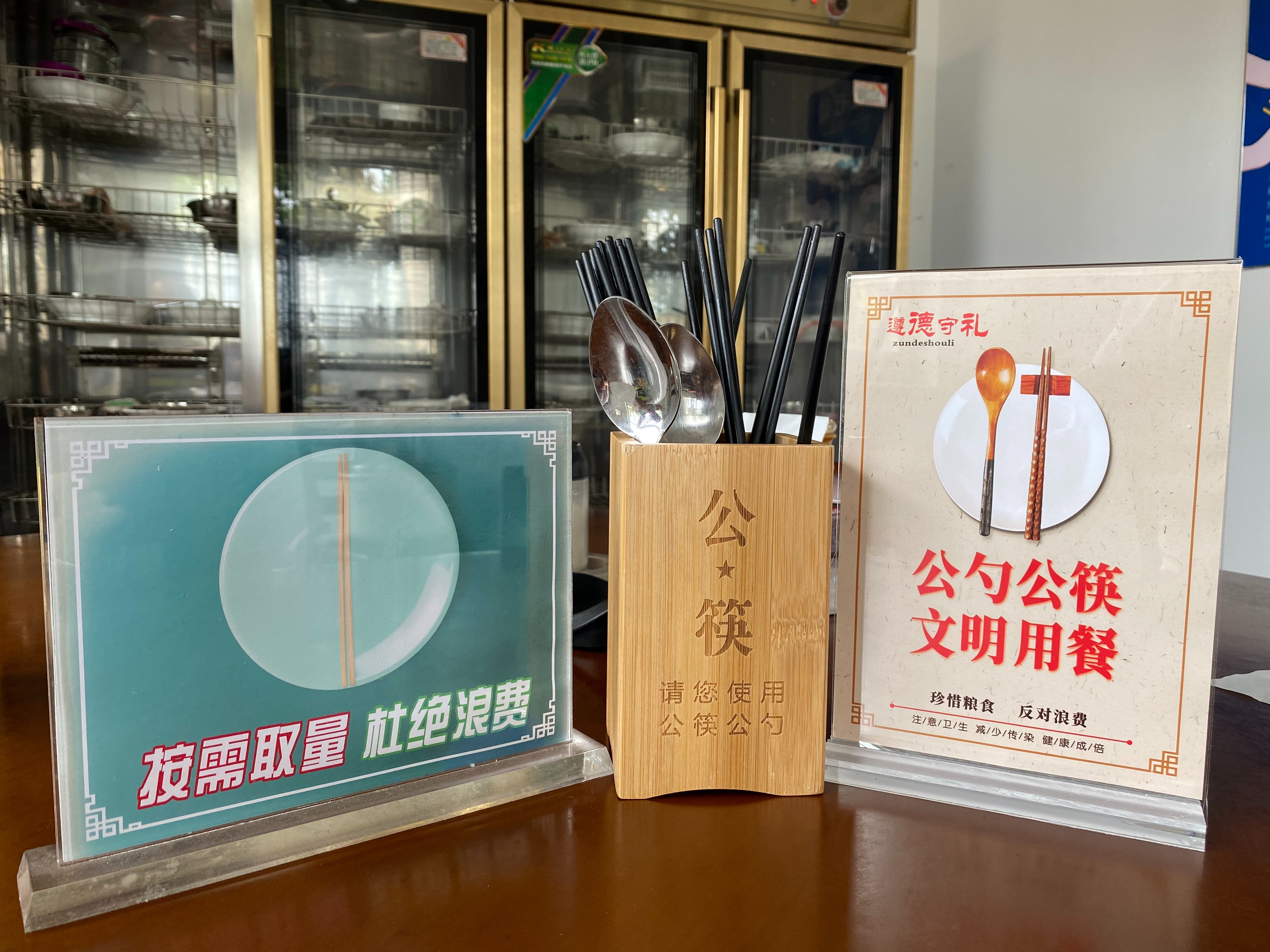 該所通過食堂粘貼宣傳畫、餐桌放置宣傳標(biāo)牌、設(shè)置公用筷子筒等多種方式進(jìn)行廣泛宣傳,以此提升“反對浪費(fèi)、公筷公勺、文明健康”的活動(dòng)知曉率,促進(jìn)全體員工積極參與,引導(dǎo)員工自覺杜絕“舌尖上的浪費(fèi)”。