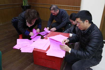 圖為統(tǒng)計(jì)選票現(xiàn)場(chǎng)