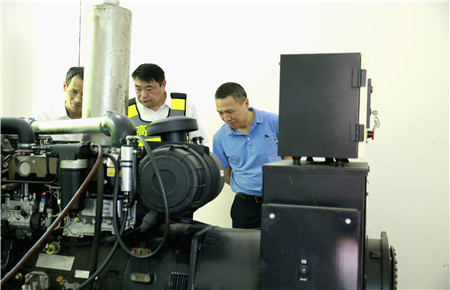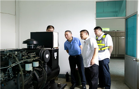 張建平察看了配電房,詳細了解工作職責,要求當班員工啟動發(fā)電機組看看保養(yǎng)工作是否到位,機電運行是否正常。