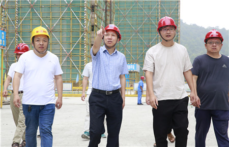 圖為集團總經(jīng)理張建平向工程團隊了解項目建設(shè)情況